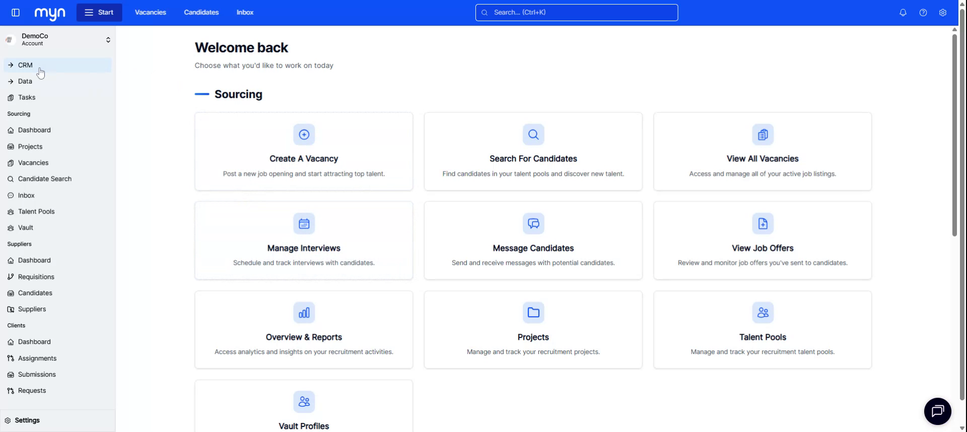 Click on the CRM link in the top-left toolbar of the Myn portal to open the CRM interface.