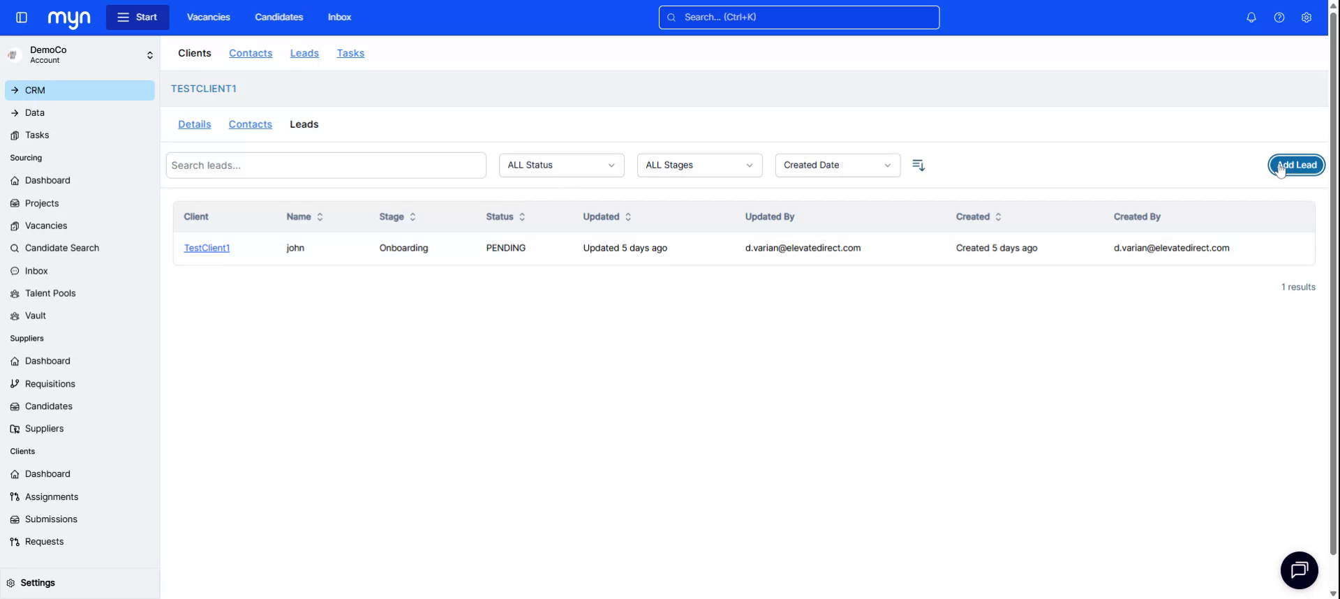This document explains how to add a new client in the Myn Portal CRM, create an associated lead, and move the client through the pipeline stages until they are ready for onboarding.